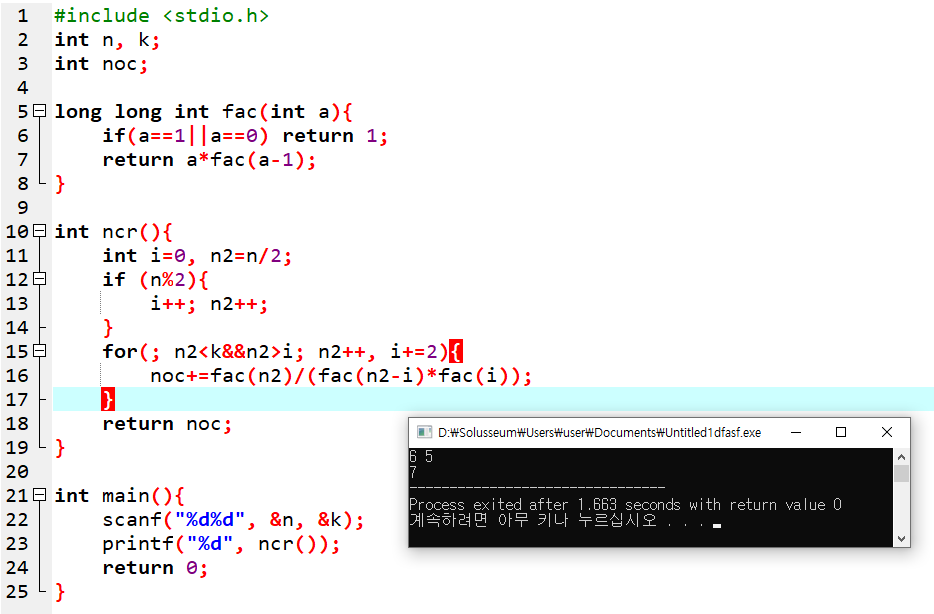//위에서 봤던 nCr공식을 factorial 함수를 이용해 구현한 것입니다.