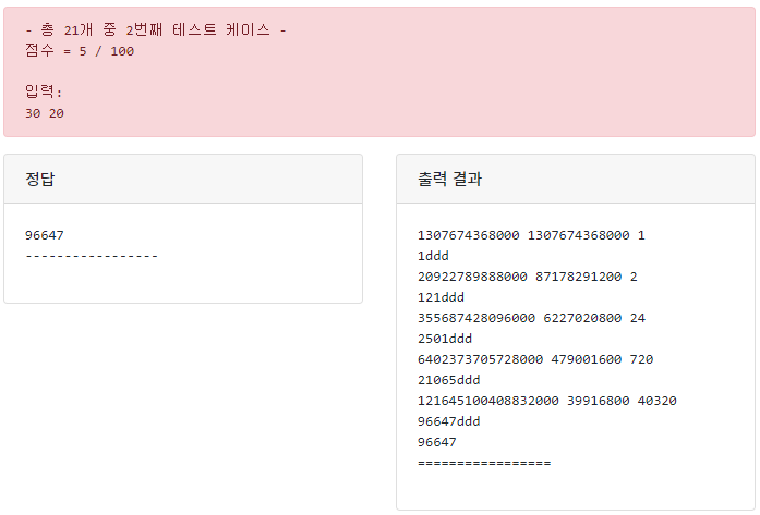 Q. 왜 fac 함수에서는 int가 아니라 long long int를 사용했는가?