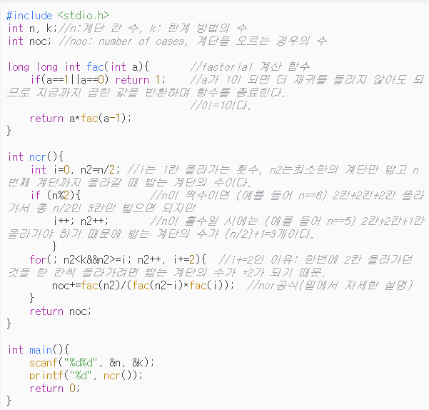 //noc: number of cases, 계단을 오르는 경우의 수