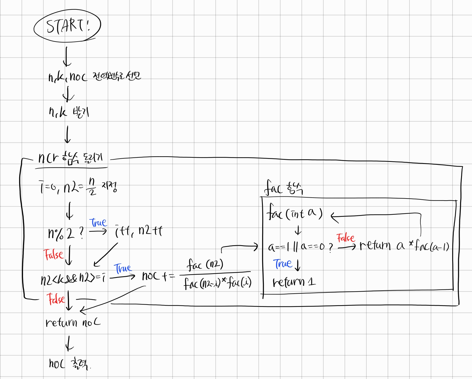 noc+=fac(n2)/(fac(n2-i)*fac(i));
