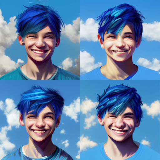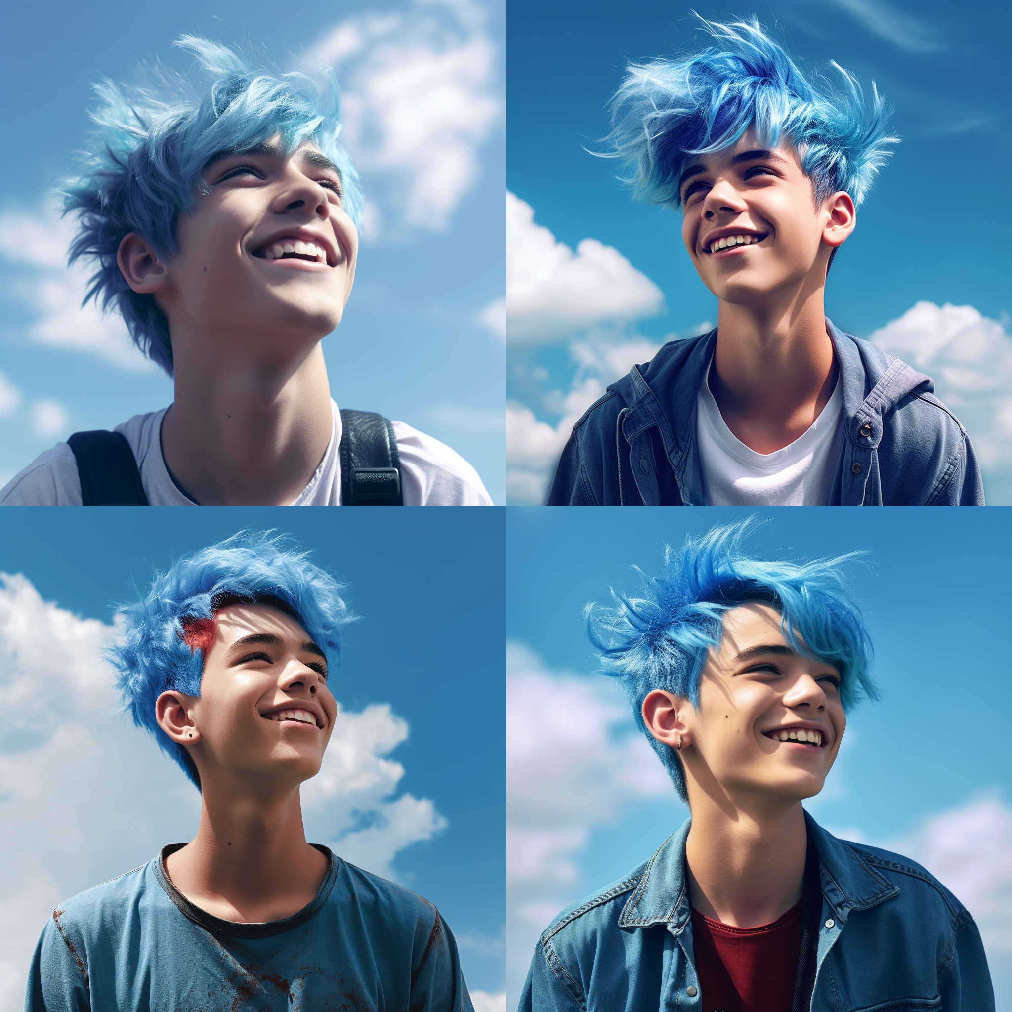 " Blue hair boy, 4k, teenage, highteen, smile, blue sky "