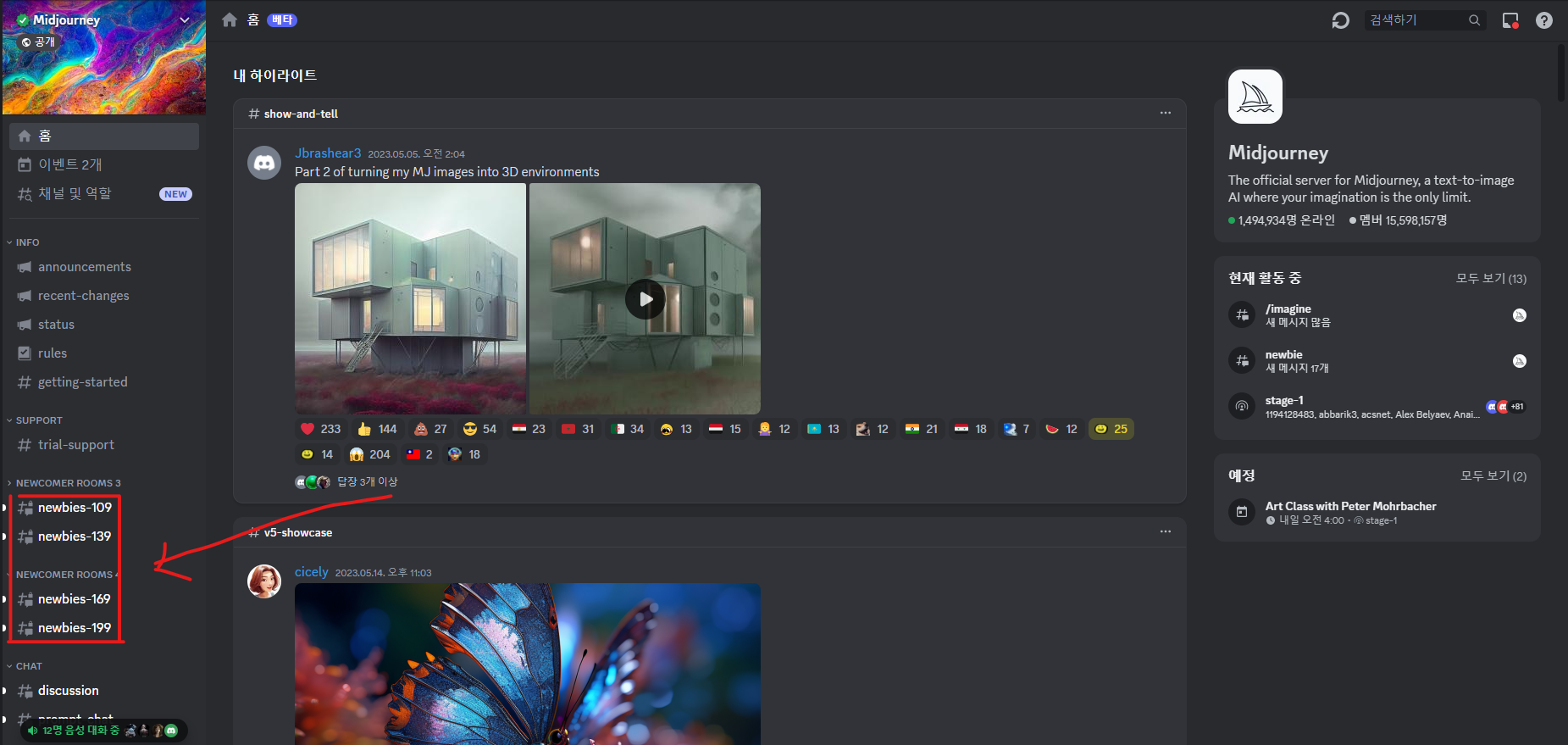 4. 왼쪽에 있는 여러 newbie 방 중 아무 곳이나 들어간다.
