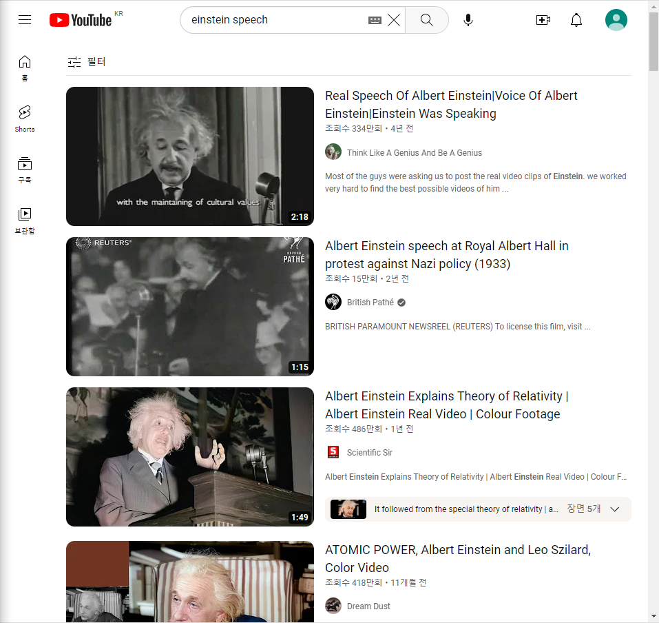 일단 유튜브에서 그 과학자분의 연설을 찾아봅니다. 그러면 자료가 쭈루룩 나올 건데요.