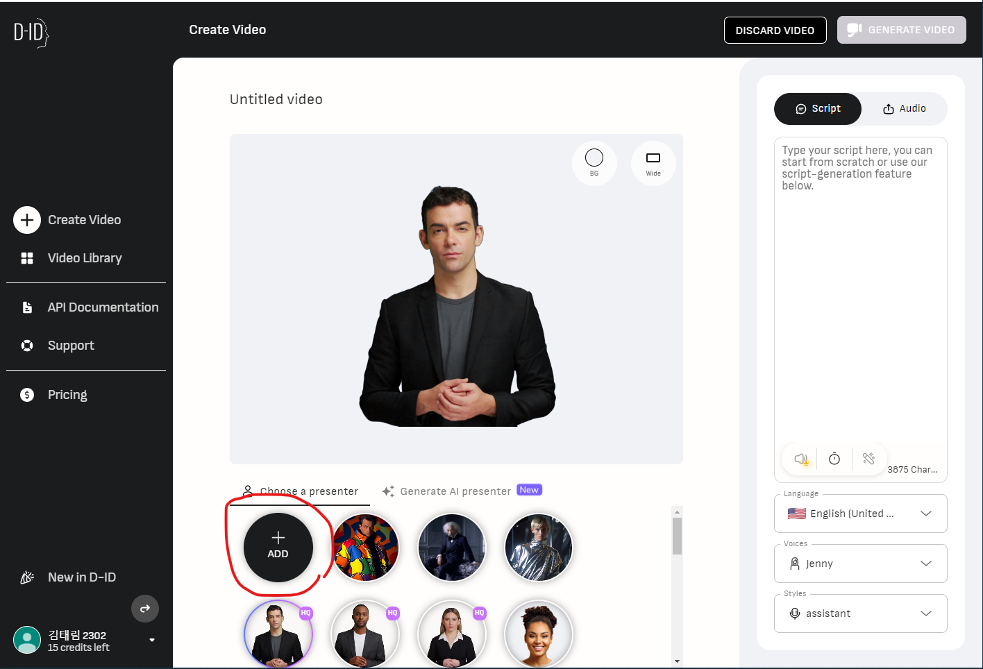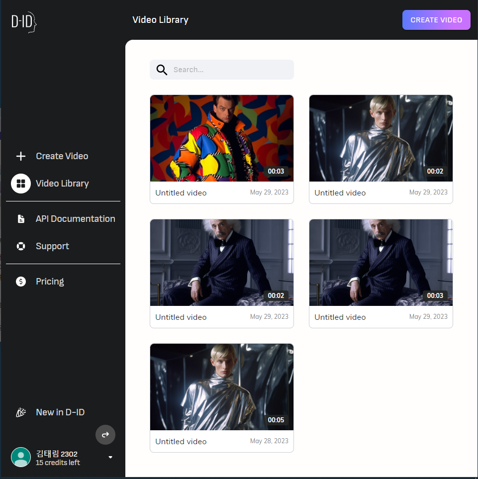 일단 D-ID 사이트에 들어가서 로그인을 해 줍니다. 참고로 D-ID는 일정 정도의 사용은 무료입니다. 와아!!!