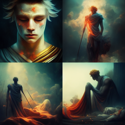 " Achilles, dying, highest quality, sad, beautiful, myth, fantasy, glow "