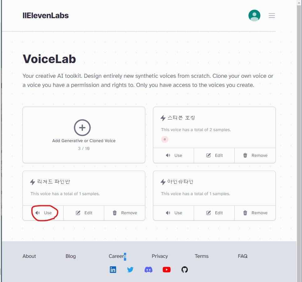 (자료를 찾을 때 인터뷰보다는 연설을 추천합니다. 일레븐랩스가 영상을 기반으로 목소리를 파악하는 거라서 원하는 사람이 아니라 다른 사람의 목소리가 섞이면 영향을 미칠 수도 있습니다. 인터뷰 같은 것은 진행자나 질문자의 목소리가 담기는 반면, 연설은 본인이 말을 하는 것이기 때문에 다른 사람의 목소리가 섞이지 않고 좋습니다.)
