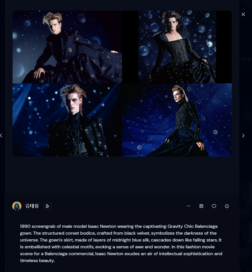 '근데... 미드저니가 성능이 좋아진게 아니라.... 위에 넣은 prompt에는 내용을 상세하게 적어서 저런 자세한 그림이 나온거고, 8개월 전에 넣었던 prompt에는 너무 간단한 내용만 넣어서 저렇게 퀄리티가 떨어지는거 아니야?'