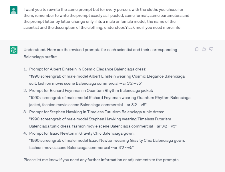 이제 완벽합니다! 챗지피티를 사용하는 단계는 끝났습니다. 이제 미드저니로 가서 이 글들을 붙여넣고 그림을 받으면 됩니다.