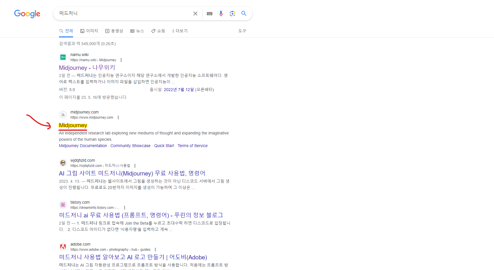 1. 미드저니를 검색한다.